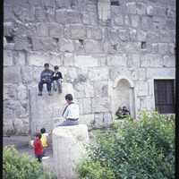 أطفال خارج سور قلعة دمشق