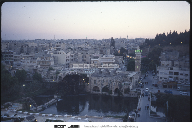 منظر عام لمدينة حماة تظهر فيه النواعير