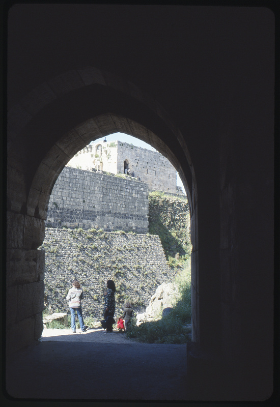 قلعة الحصن كما تظهر من أحد الممرات