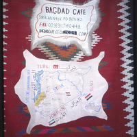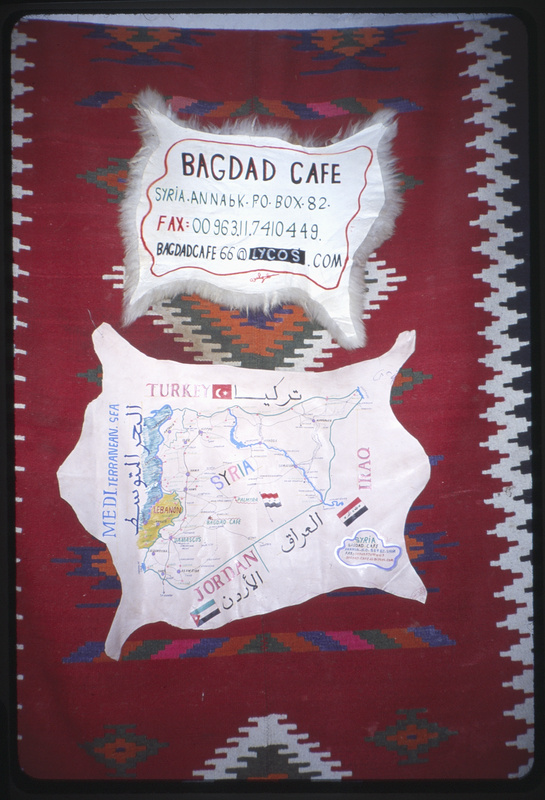 لافتة معلومات مقهى بغداد وخريطة لسوريا