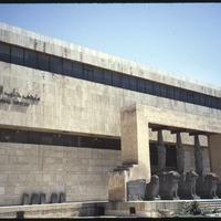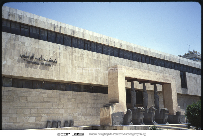 واجهة متحف حلب الوطني أمامه نسخة من واجهة القصر الملكي في تل حلف