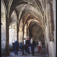 مجموعة سياحية في دير قوطي في فناء القلعة