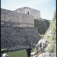 رجال يصطادون في خندق مائي محيط بالقلعة