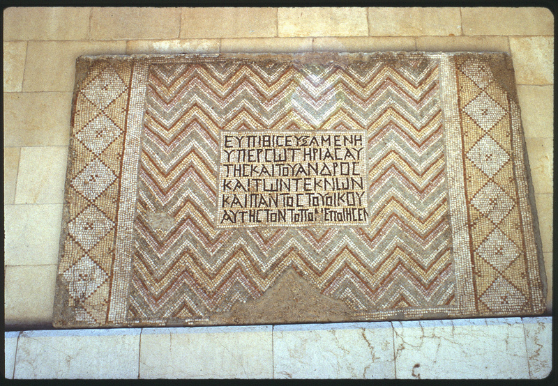 فسيفساء بأشكال هندسية ونقوش يونانية في متحف دمشق الوطني