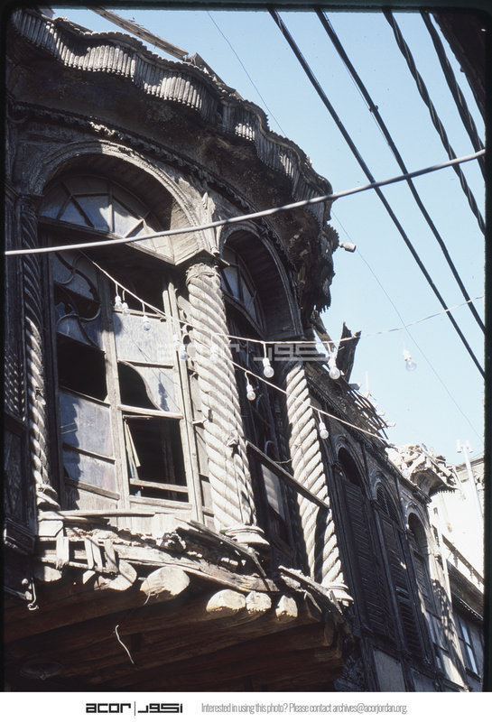 تفاصيل النوافذ والأعمدة المزخرفة لمبنى في دمشق القديمة