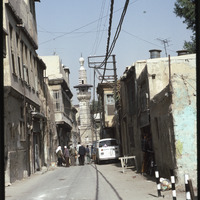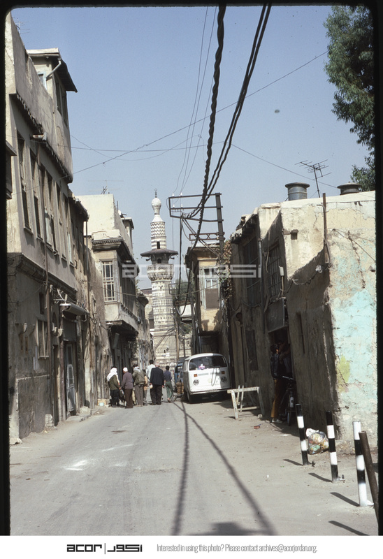 منظر من أحد شوارع دمشق القديمة تظهر فيه منارة غير معروفة