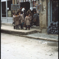 مجموعة أطفال بالزي المدرسي أمام مكتبة في أحد شوارع دمشق