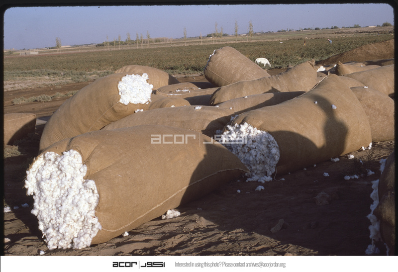 قطن محصود في أكياس في منطقة قلعة الرحبة