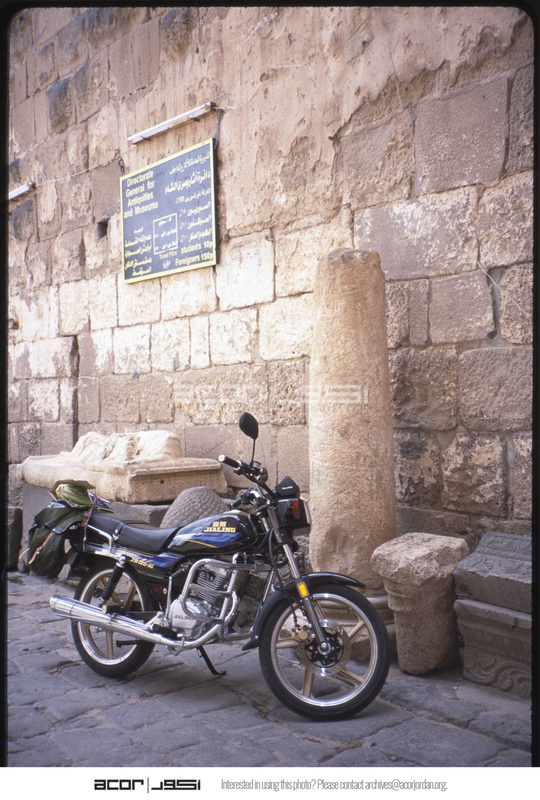 دراجة نارية أمام المديرية العامة للآثار والمتاحف - دائرة آثار بصرى الشام