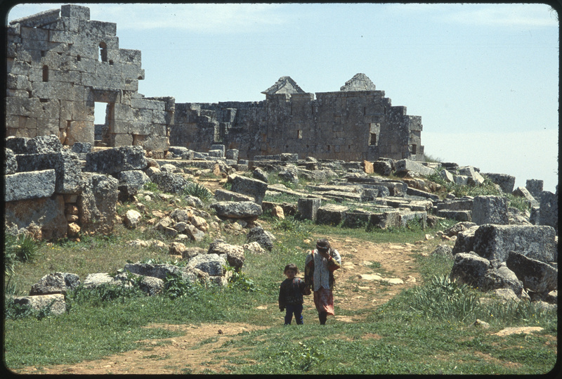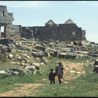 أطفال أمام أنقاض في موقع سرجيلا الأثري