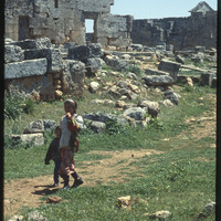 أطفال أمام أنقاض في موقع سرجيلا الأثري