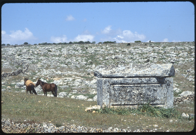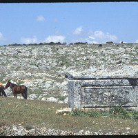منظر للقبور مع أحصنة