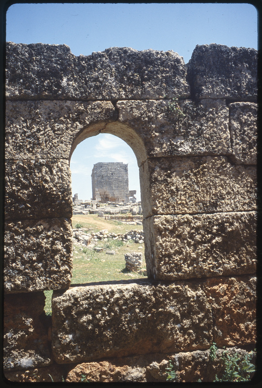 منظر لأنقاض موقع سرجيلا الأثري من خلال نافذة