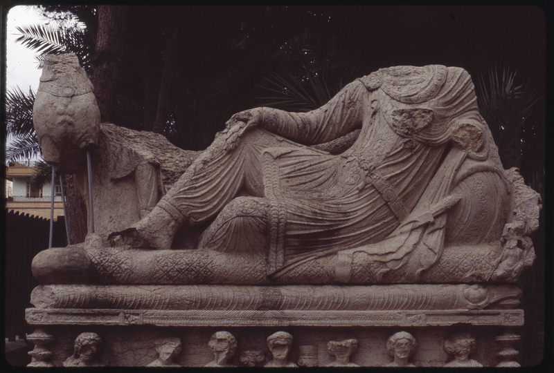 تابوت يظهر الموتى متكئين على أريكة في متحف تدمر