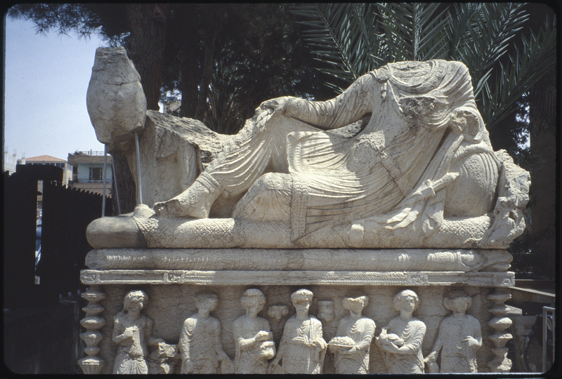 تابوت يظهر الموتى متكئين على أريكة في متحف تدمر