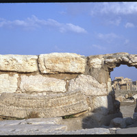 منظر للأعمدة وقوس النصر من خلال الأنقاض
