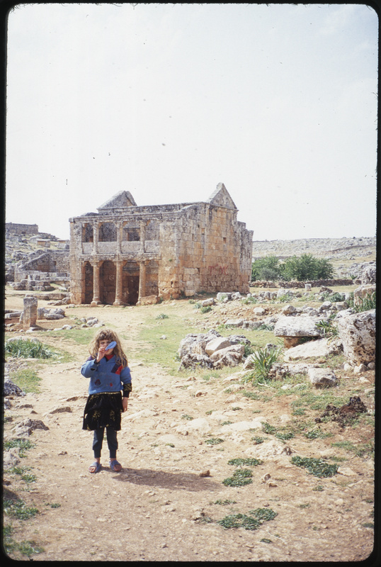 صورة لطفلة من أمام أنقاض منزل من طابقين في موقع سرجيلا الأثري