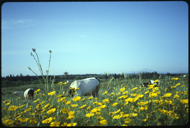 أبقار وزهور بحقل حول موقع أوغاريت الأثري