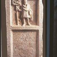 Roman military headstone with Latin inscription and relief
