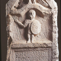 Roman military headstone with Latin inscription and relief