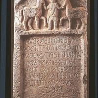 Roman military headstone with Latin inscription and relief