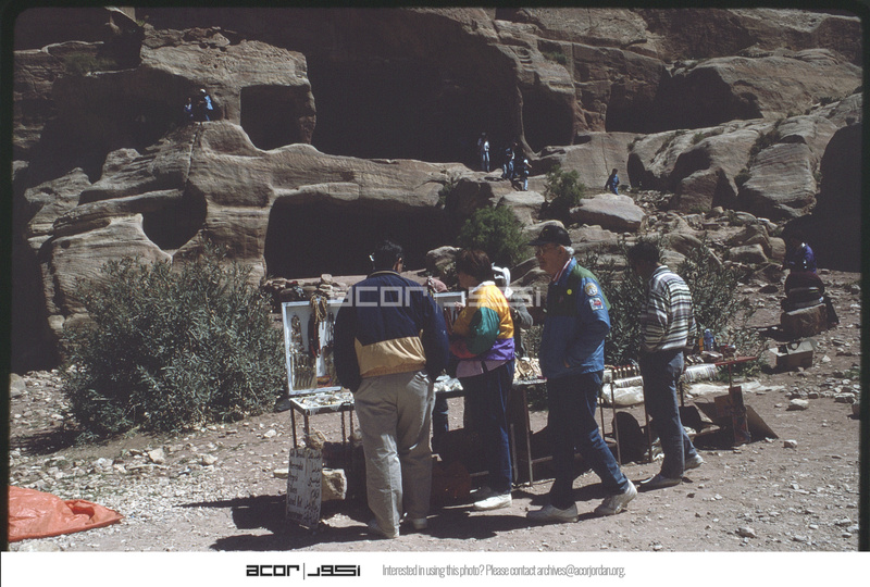 Bedouin man is selling handmade local ornaments, Petra