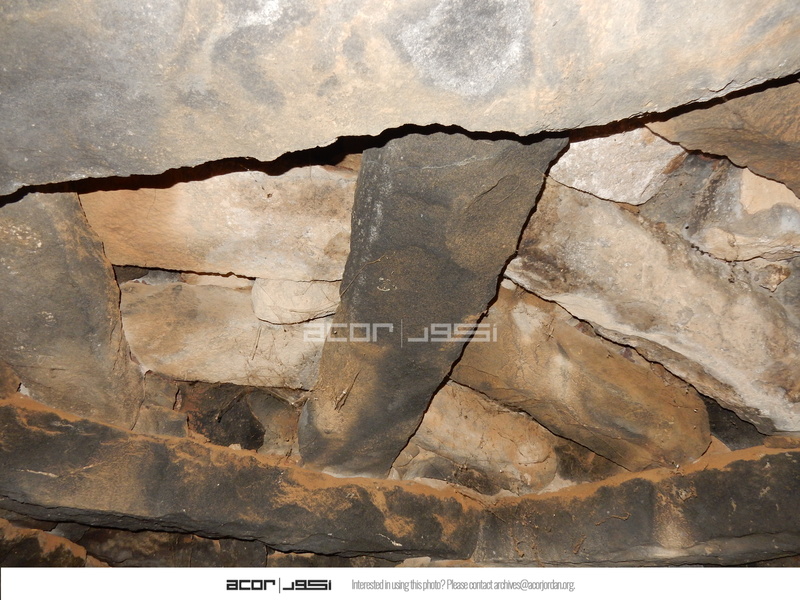 Jordan. Umm al Jimal, room in House XVII repaired as part of Ambassadors Fund for Cultural Preservation project, view of corbels in ceiling