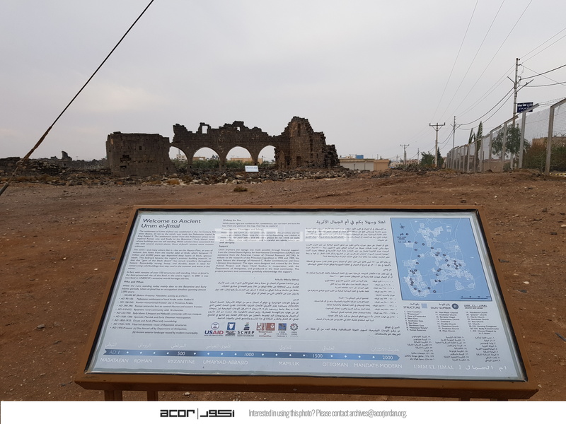 Jordan. Umm al Jimal, welcome sign in northwest entrance