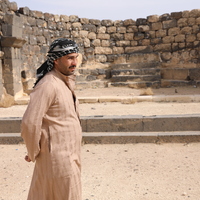 Jordan. Umm al Jimal, Ahmad Al Masaeed inside Cathedral