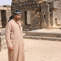 Jordan. Umm al Jimal, Ahmad Al Masaeed inside Cathedral