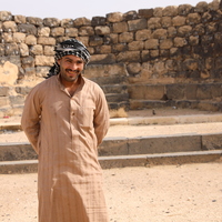 Jordan. Umm al Jimal, Ahmad Al Masaeed inside Cathedral