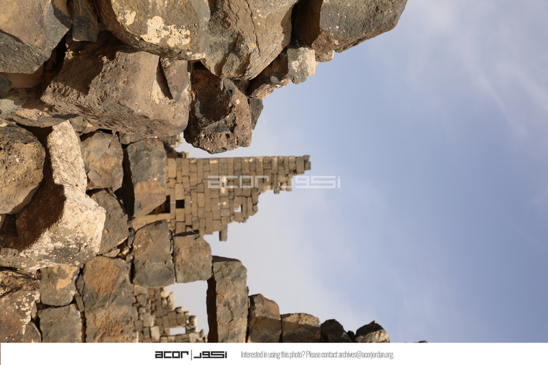 Jordan. Umm al Jimal, view of tower of House XVII from within House XVIII