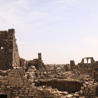 Jordan. Umm al Jimal, view of house XVII and XVIII from the north