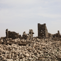 Jordan. Umm al Jimal, rubble with Houses XVII and XVIII in the background