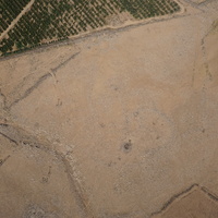 Jordan. Umm al Jimal, aerial view, modern farms, animal corrals, and stone piles, northeast of Umm al Jimal