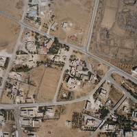 Jordan. Umm al Jimal, aerial view, modern town and northwest quadrant of archaeological site