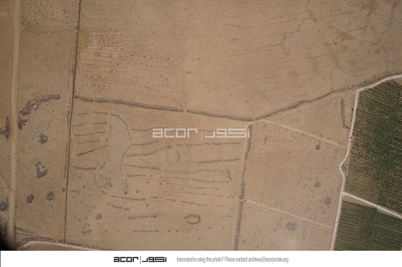 Jordan. Umm al Jimal, aerial view with ancient farmstead and animal corrals, occupation debris and gravel