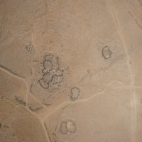 Jordan. Umm al Jimal, aerial view, ancient and modern farm fields and ancient animal corrals in countryside northeast of Umm al Jimal