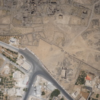 Jordan. Umm al Jimal, aerial view, northwest quadrant of Byzantine site, on right hand side is the Cathedral