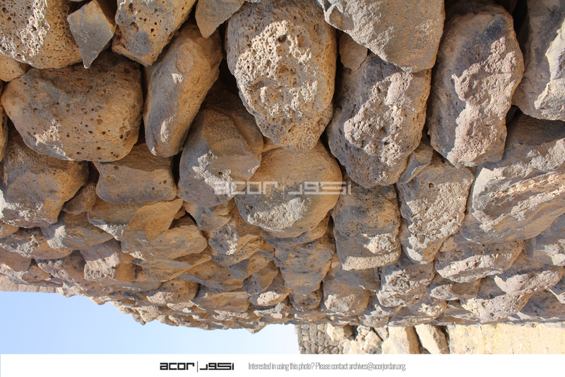 Jordan. Umm al Jimal, curved garden wall on the exterior of House IV
