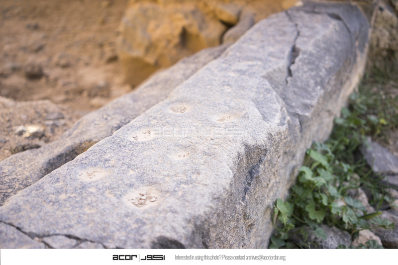 Jordan. Umm al Jimal, doorstep to Commodus Gate, holes show where mangala game was played