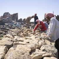 Jordan. Umm al Jimal, local workers clearing interpretive trail