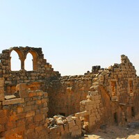 Jordan. Umm al Jimal, view of east rooms of House XVIII from second floor of the house