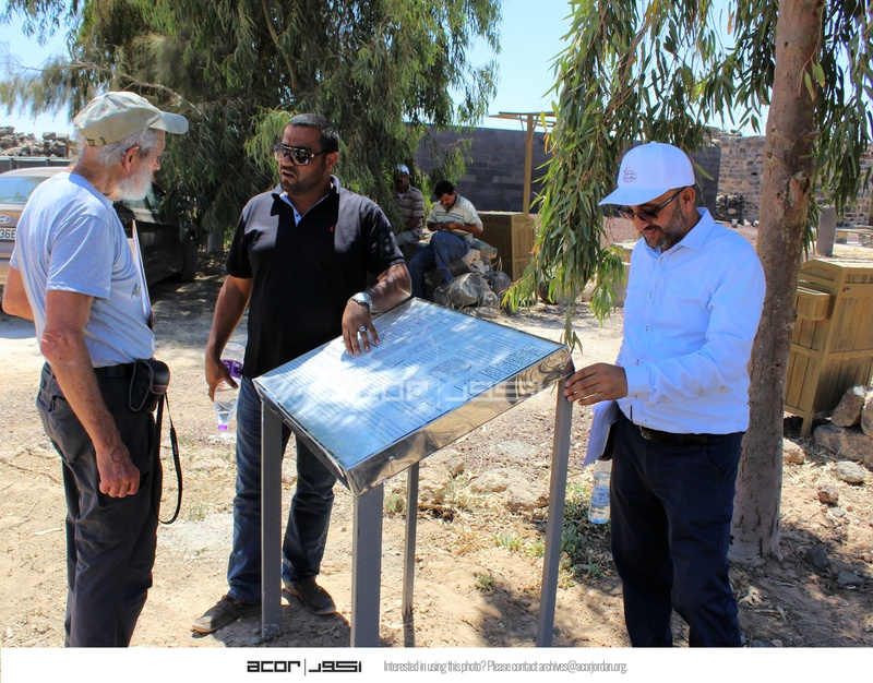Jordan. Umm al Jimal, site steward Muaffaq al-Masaeed with Jehad Haron and Bert de Vries inspecting new signs