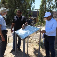 Jordan. Umm al Jimal, sign showing various altar pedestals and displaying information on the pre-Christian religions of Umm al Jimal
