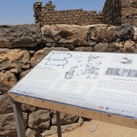 Jordan. Umm al Jimal, sign for the Double Church, both apses are shown
