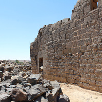 Jordan. Umm al Jimal, north wall, bulging masonry in wall of House XVII