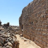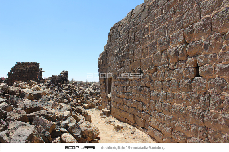 Jordan. Umm al Jimal, north wall, bulging masonry in wall of House XVII