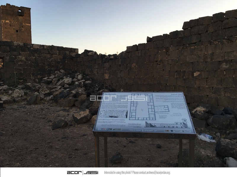 Jordan. Umm al Jimal, interpretive sign for Barracks