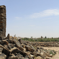 Jordan. Umm al Jimal, southeast corner of House XVIII, the hole in the ground on the right is a reservoir
